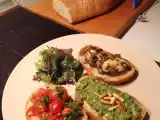 Bruschetta lachs avocado Vorspeise sehr einfach 10 minZutaten: Geröstete Brötchen 2 Scheiben geräucherter Lachs 1 Avocado Kräuter der Provence Olivenöl Salz Pfeffer Einige Tropfen Zitronensaft (optional)