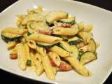 Zucchini-carbonara Hauptgericht sehr einfach 10 min 15 minZutaten: 125-150g Nudeln nach Belieben 1 kleine Zucchini 150g Bauchspeck 200g saure Sahne 1 Eigelb 2 gehäufte esslöffel Parmesan, fein gerieben Salz...