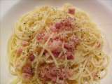 Spaghetti carbonara, das wahre rezept! Hauptgericht sehr einfach 5 min 10 minZutaten: 200 g Spaghetti 100 g Parmesan (oder Pecorino) 4 Scheiben Pancetta (4 bis 5 Scheiben) 2 Eier Gemahlener Pfeffer