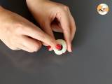 Legen Sie eine Blaubeere in eine Litschi und wiederholen Sie den Vorgang mit allen Litschi, um die Augen zu formen.