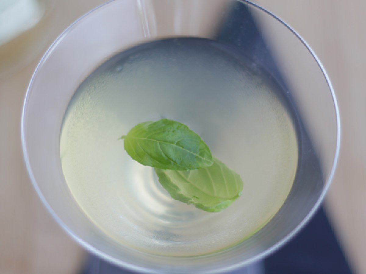 In einem Martiniglas servieren und mit Basilikumblättern dekorieren.