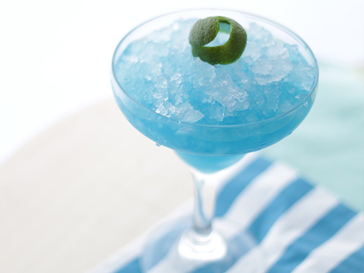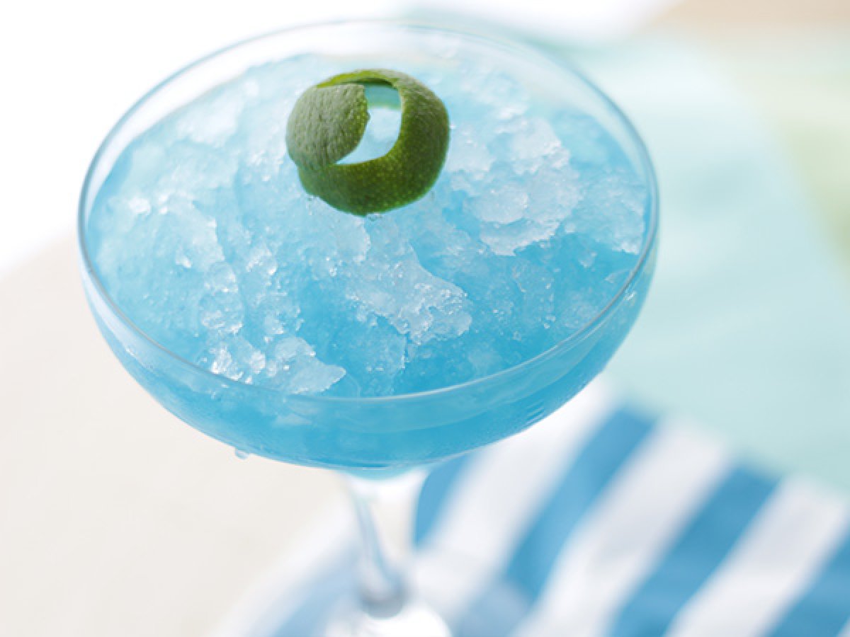 Mit einer Limettenschale dekorieren. Ihre Blue Lagoon ist fertig!