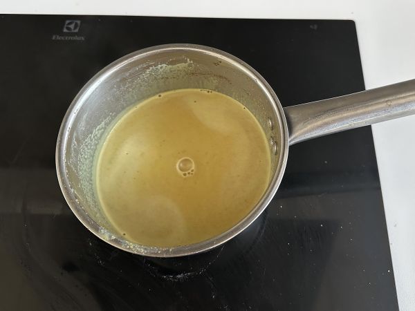 Wenn Sie möchten, können Sie die Milch auch abseihen. Die Verwendung von Honig ist optional. Genießen!