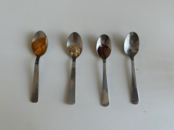 Dann Kurkuma, Ingwer, Zimt und Chili hinzufügen.