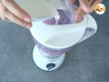 Fügen Sie nach und nach die Milch hinzu, während Sie weiter mixen. Ihr Lassi sollte cremig sein.