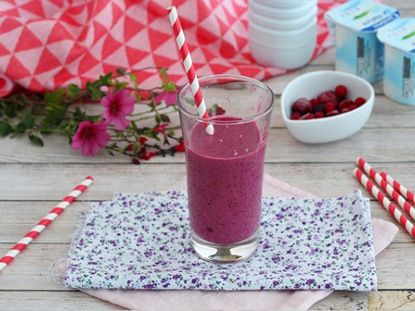 Mixen Sie die roten Früchte, den Naturjoghurt und den Zucker in einem Mixer.