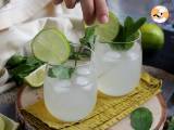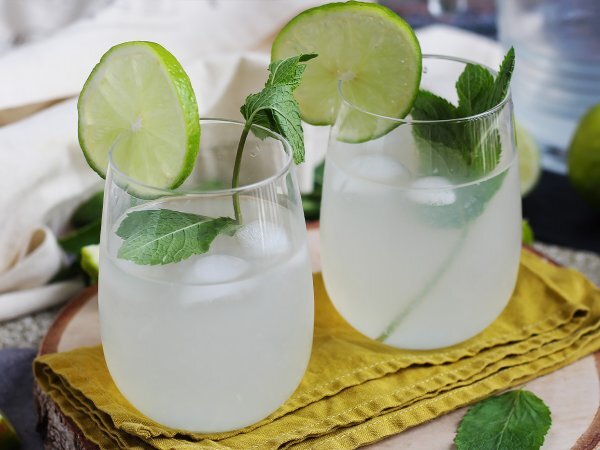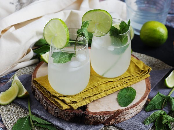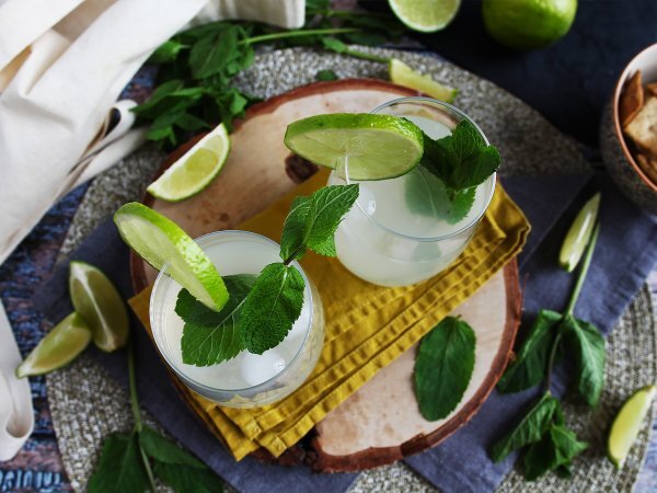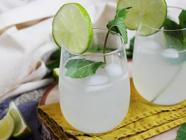 In zwei Gläsern mit Eiswürfeln servieren. Zum Garnieren einen Zweig Minze und eine Zitronenscheibe hinzufügen und voilà!