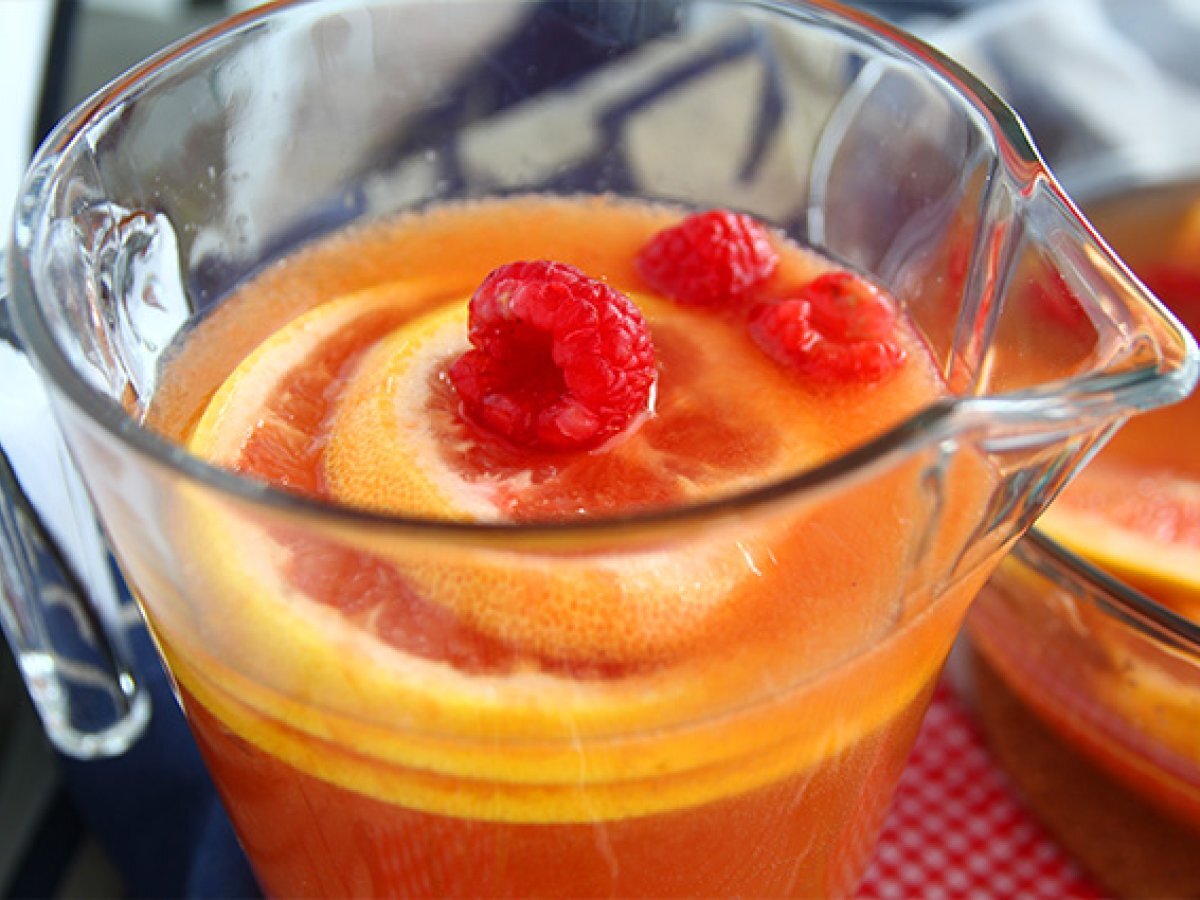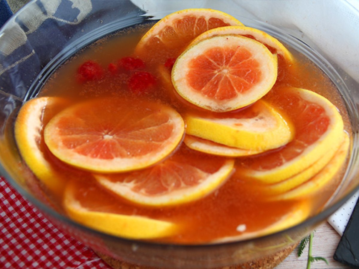 Für einen frischen und fruchtigen Aperitif entscheiden Sie sich für eine selbstgemachte Sangria! Ersetzen Sie den Rotwein durch Roséwein, um einen leichteren und originelleren Effekt zu erzielen ;-) Geben Sie alles in eine große Salatschüssel und lassen Sie jeden nach Lust und Laune zugreifen! Bei den Früchten passen die bitteren Aromen der Grapefruit wunderbar zu den säuerlichen Himbeeren, die mit einer Prise braunem Zucker vermischt werden ;-) Folgen Sie Schritt für Schritt den Schritten zur Herstellung dieser Sangria und tschin tschin!