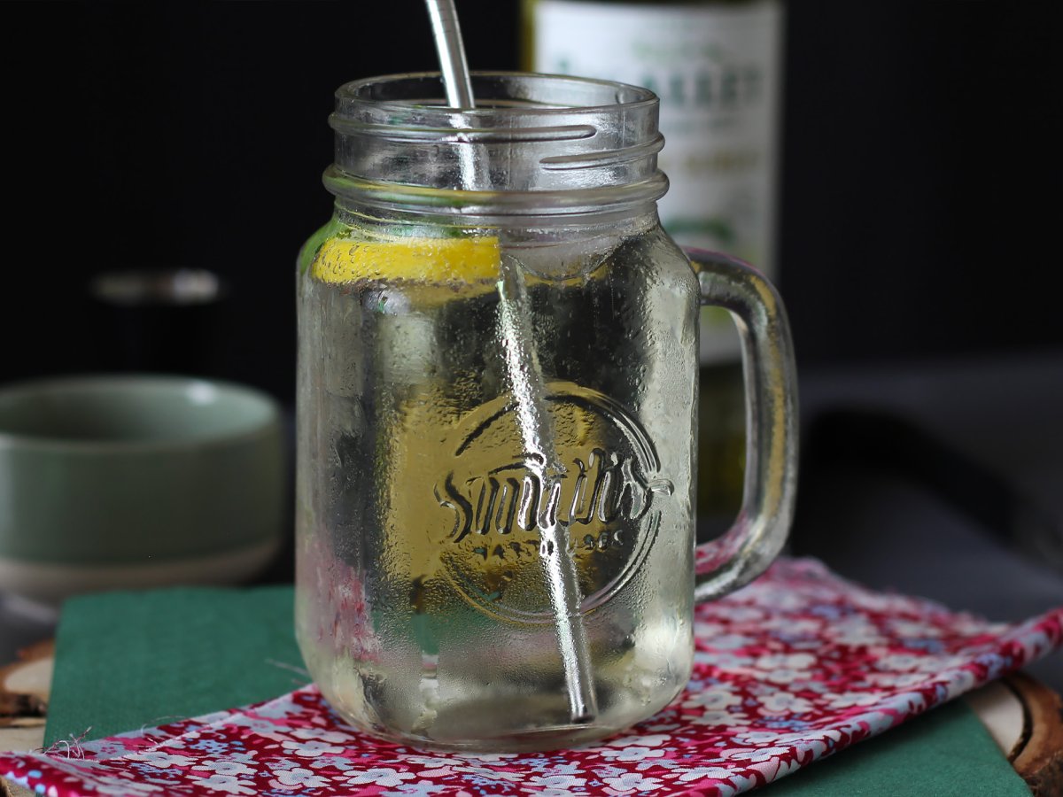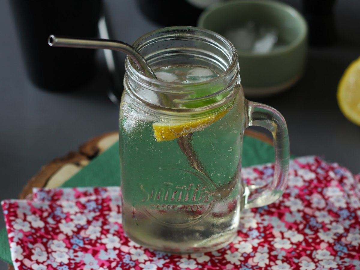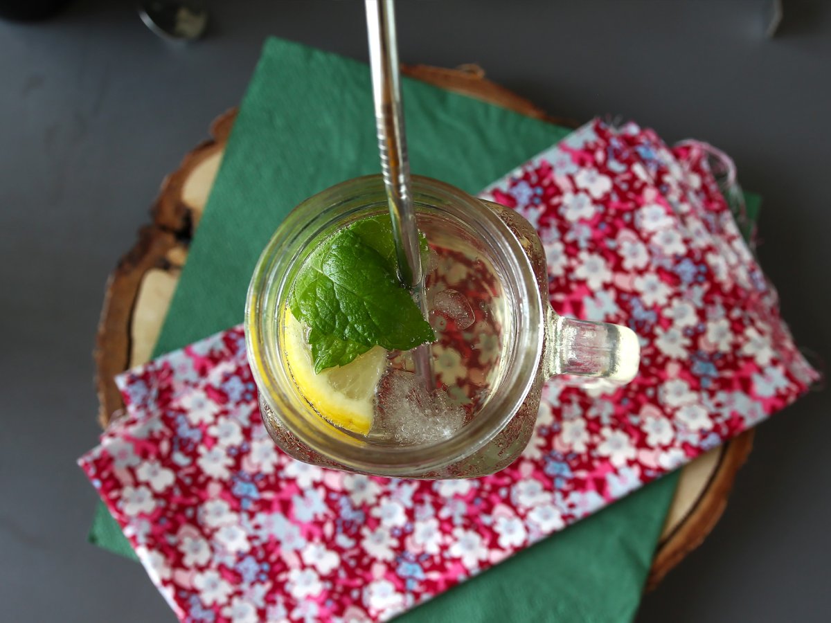 Schließlich fügen Sie eine Scheibe Zitrone oder grüne Zitrone und ein paar frische Minzblätter dazu.