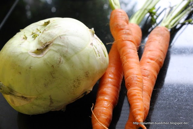 Pro Person je eine große Möhre, ein Viertel einer großen Kohlrabe, ein großes Blumenkohlröschen in kleine Röschen geteilt.