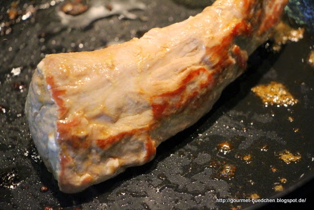 Das Schweinefilet in der Butter von allen Seiten anbraten und leicht bräunen.