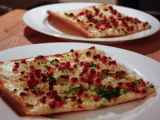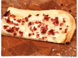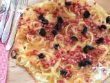 Zutaten: Teig: 200 g Mehl 100 ml Wasser Von Salz 1/2 Teelöffel dachte Belag: Ca 4 rote Zwiebeln 1 Lauch Öl 2-4 Esslöffel Sahne oder Sauerrahm Meersalz...