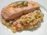 Zutaten: 4 Lachsfilets ohne Haut à 80 g 8 essloffelmildes Olivenöl nativ extra 1 Orange circa 80 ml mildes Olivenöl nativ extra 4 Zweige Orangenthymian...