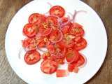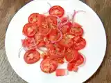 Zutaten: Zutaten für 2 Portionen für die Soße 1 Zitrone 1 Vanillenhülse 1 cs Zucker 2 cs Olivenöl für den Salat 1/2 rote Zwiebeln, 1 rosa Grapefruit 2...