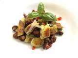 Zutaten: 2 Esslöffel Olivenöl 2-3 Schalotten 5-7 kleine Rispentomaten, grob gewürfelt 1 Glas Paprika-Bruschetta Mischung Salz und Pfeffer zum Abschmecken...