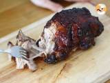 Bei 120 °C 6 bis 7 Stunden backen. Das Fleisch regelmäßig begießen, damit es nicht austrocknet. Wenn Sie ein Kochthermometer haben, sollte die Kerntemperatur 90°C erreichen.