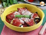 Mit unserem Auberginengericht können Sie der ganzen Familie Gemüse zu essen geben! Gerollt mit Tomaten und Mozzarella-Käse, alles mit Tomatensauce und Parmesan bedeckt.... ein wahres Glück! Zu essen als Einzelgericht für eine vegetarische Mahlzeit oder als Beilage :-)