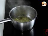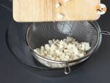 Die Zwiebel fein hacken, Olivenöl in eine Pfanne geben und sobald es heiß ist, die Zwiebel hinzufügen. Einige Minuten anbraten.