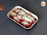 Bilden Sie die Schichten weiterhin in dieser Reihenfolge (für einen guten Parmigiana benötigen Sie mindestens 3 Schichten) und denken Sie daran, dass die letzte Schicht in dieser Reihenfolge zusammengesetzt sein muss: Mozzarella, Tomatensauce und (viel) Parmesan.