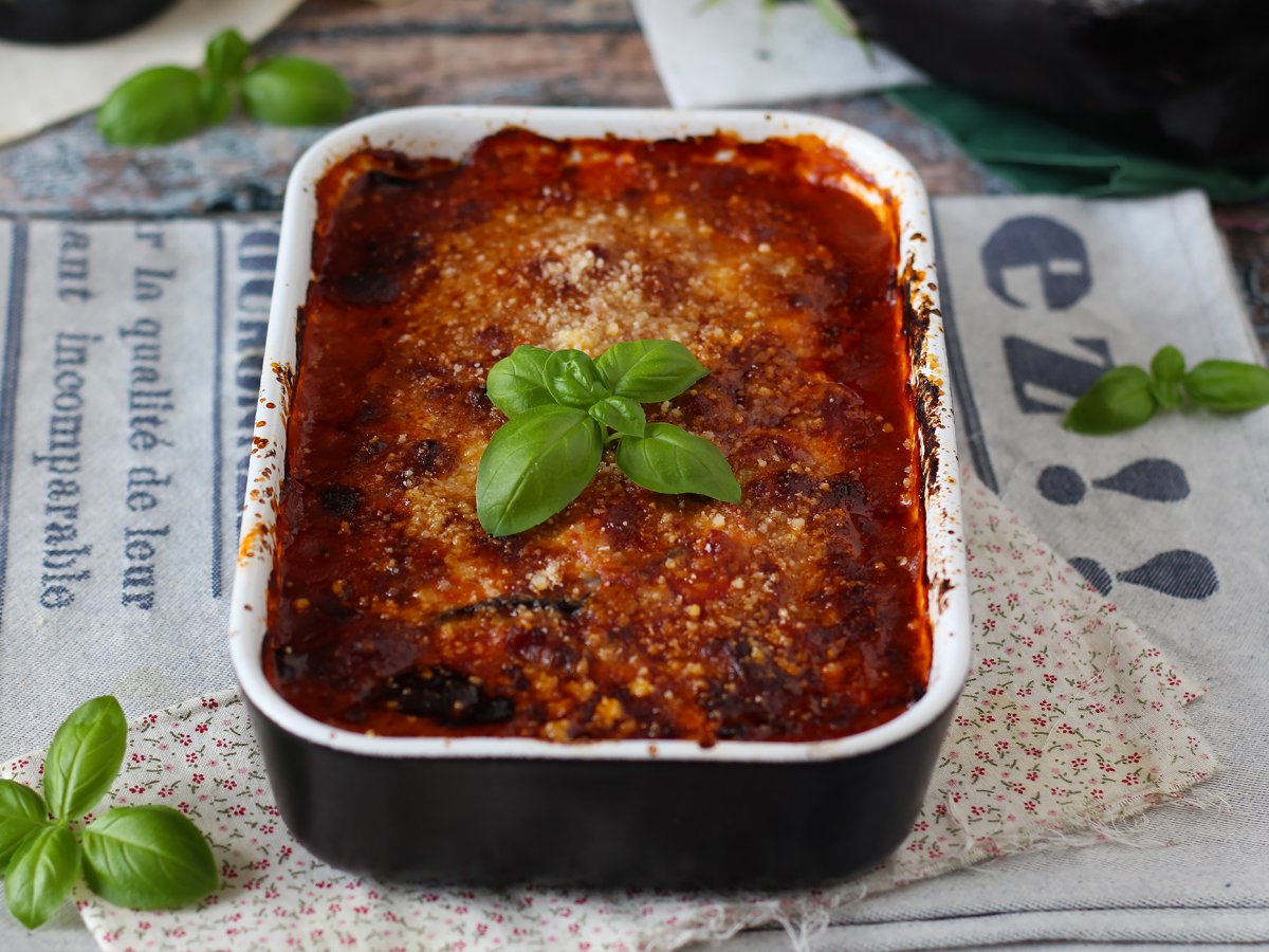 Nehmen Sie das Gericht aus dem Ofen und lassen Sie es vor dem Servieren zehn Minuten bei Zimmertemperatur ruhen. Et voilà,Ihr Parmigiana ist fertig!