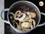 Anschließend die in Scheiben geschnittenen Champignons dazugeben und nochmals 1 Stunde köcheln lassen.