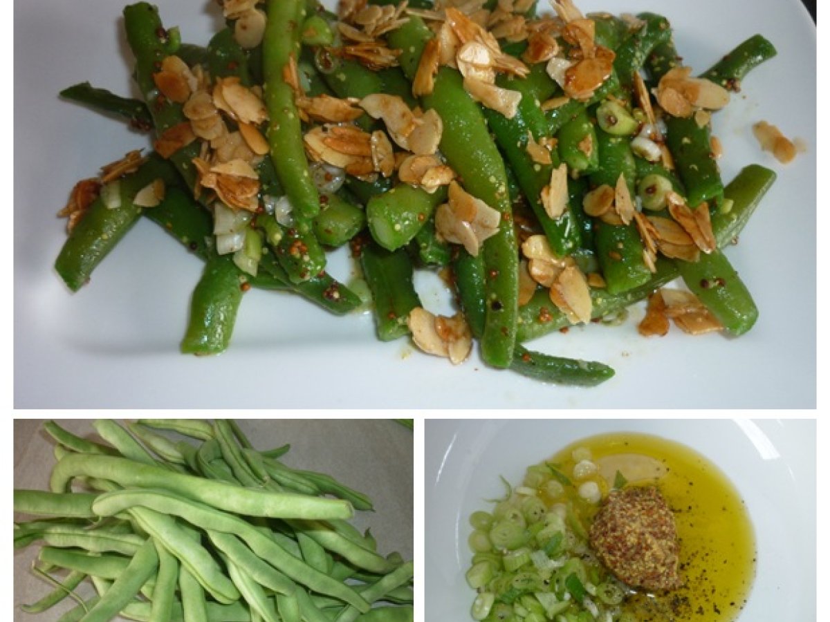 Beilage: grüne bohnen mit senfdressing und gerösteten mandeln