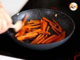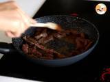 Das Fleisch und die Marinade in einer Pfanne bei starker Hitze kurz anbraten.