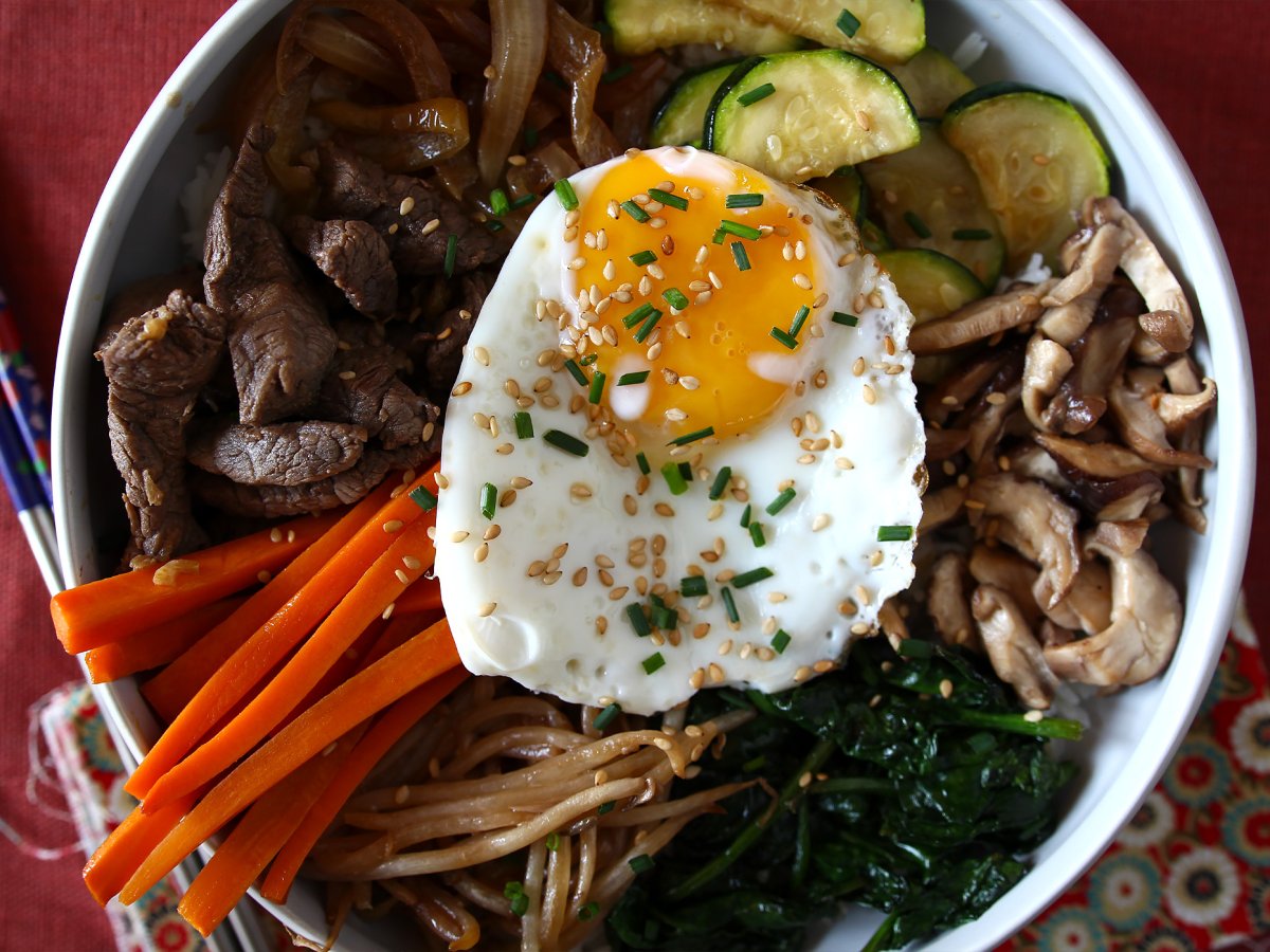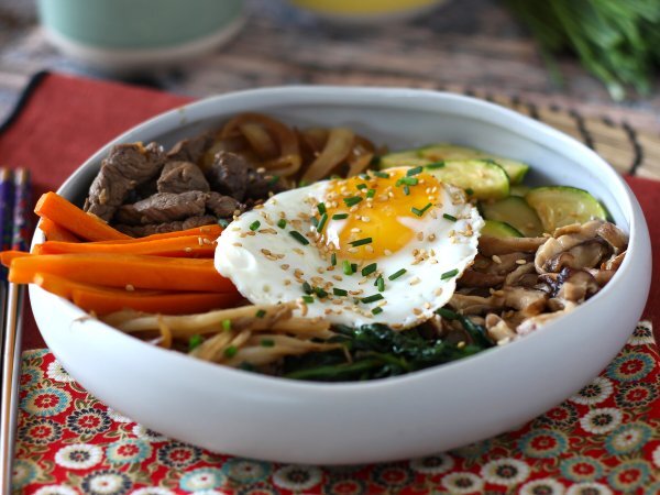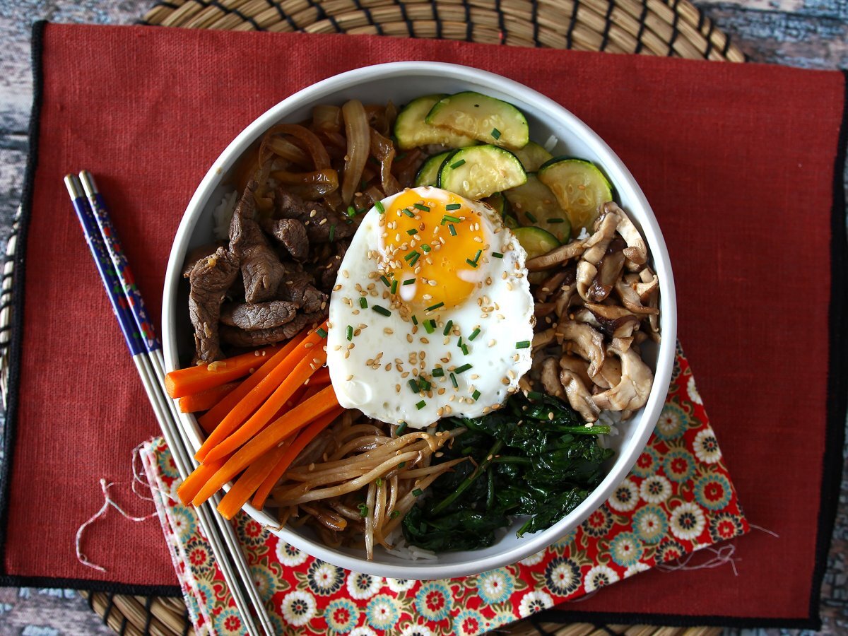 Sie können Bibimbap zu mariniertem Fleisch oder Fisch oder sogar zu Tatar oder rohem Fisch servieren. Es gibt mehrere Variationen dieses Gerichts.