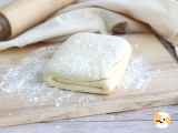 - Dann die Creme Mischen. Schneiden Sie den Blätterteig in 9 gleich große Stücke.