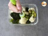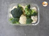 Brokkoli und Blumenkohl waschen und schneiden, sodass nur die Röschen übrig bleiben, dann dämpfen. Sie müssen zart sein.