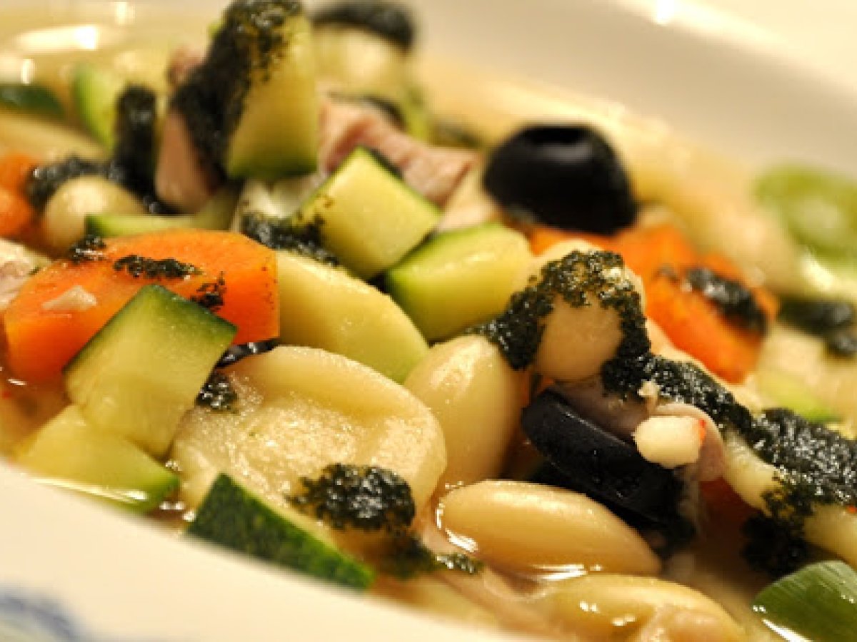 - Weiße Bohnen, frisch oder über Nacht mit Oregano, Rosmarin, Knoblauch min getränkt. Kochen Sie 40 Minuten.