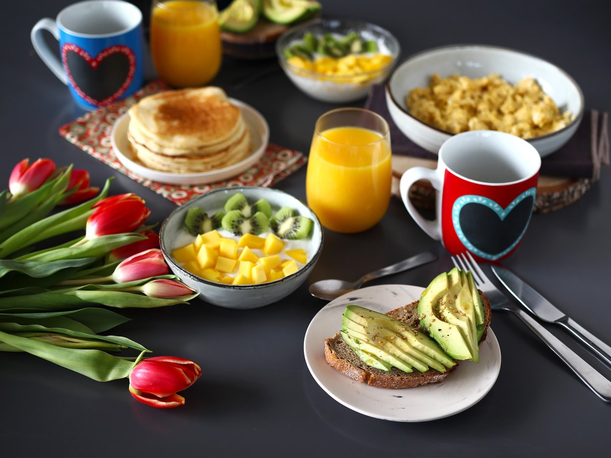 Wie wäre es, wenn man am Valentinstag schon in den frühen Morgenstunden bei seinem Liebsten / seiner Liebsten ein Zeichen setzen würde? Dafür gibt es nichts Besseres als einen Brunch. Die perfekte süß-salzige Mischung aus Frühstück und Mittagessen. Man schlendert, nimmt sich Zeit und vor allem genießt man diese Rezepte, die einfach zuzubereiten sind und Ihrer besseren Hälfte ein Lächeln ins Gesicht zaubern werden. Avocadotoast, Rührei, Pfannkuchen oder auch Saft aus frisch gepressten Orangen- alles wird dabei sein! Sie sind dran ;-) Und psiiiiit: Vergessen Sie die Blumen nicht!