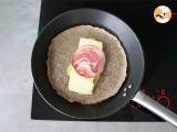 Wenn der Käse geschmolzen ist (ca. 5 Minuten Garzeit), verschließen Sie die Galette, indem Sie die Ränder falten.