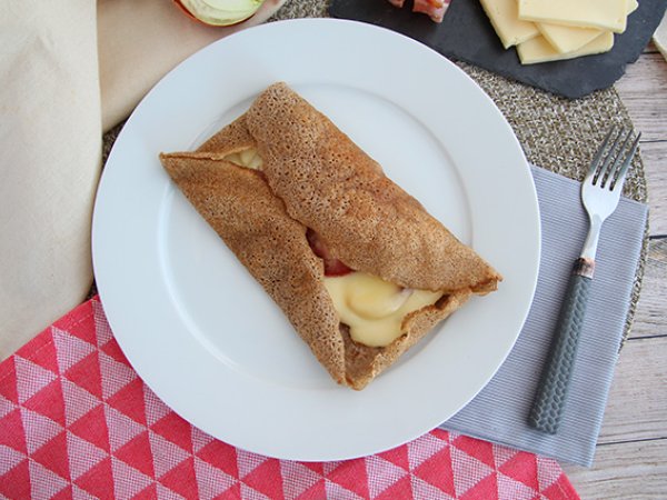 Wenn Sie Käse und herzhafte Crêpes mögen, mixen Sie alles zu einem Buchweizenpfannkuchen mit Raclettegeschmack! Ein einfaches und schnelles Rezept, das Sie mit nur drei Zutaten verwöhnen wird :-) Diese Galette ist natürlich glutenfrei und kann problemlos mit Gästen mit Allergien/Unverträglichkeiten geteilt werden. Dazu passt ein gemischter Salat.