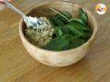 Am Boden einer großen Schüssel, legen Sie die Spinatsprossen. Auf einer Seite der Schüssel, fügen Sie die gekochte Quinoa hinzu.