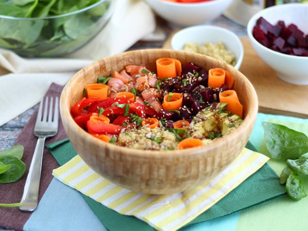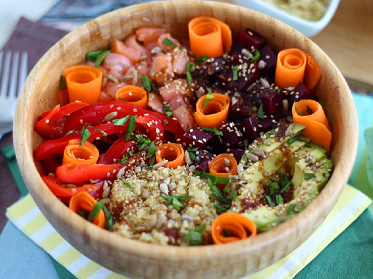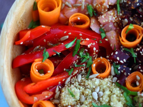 Für eine einfache, schnelle und ausgewogene Mahlzeit entscheiden Sie sich für diese Buddha Bowl! Ein großer Trend auf Instagram, dieses Rezept kombiniert eine ganze Reihe von Lebensmitteln in einer Schüssel für eine appetitliche und vollständige Rendering. Die Möglichkeit, Ihre klassischen komponierten Salate in eine verlockendere Version zu verwandeln :-) Ein gutes Rezept gegen Verschwendung am Wochenende, wenn wir eine ganze Menge Reste von den vorherigen Mahlzeiten übrig haben ;-)
