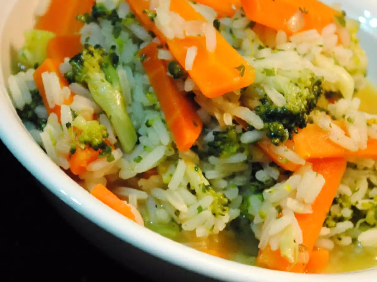 - Ablöschen mit Gemüsebrühe und köcheln lassen, die ganze 5 Minuten.