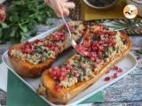 Sie haben einen Butternusskürbis und möchten etwas anderes als ein Velouté zubereiten? Es ist Zeit, es zu stopfen! Das komplette, herzhafte, winterliche und farbenfrohe Essen gehört Ihnen! Denn ja, sein Orangenfleisch ist für unseren Körper genauso gut wie für unseren Geist :-) In Kombination mit dem Rot der Granatapfelkerne und dem Grün von frischem Koriander wird diese Mahlzeit Ihren Gaumen erfreuen und Ihnen Balsam fürs Herz geben :- ) Die Gelegenheit, die ganze Familie dazu zu bringen, Gemüse der Saison sowie ein köstliches vegetarisches Gericht zu essen ;-) Folgen Sie der Anleitung Schritt für Schritt dank unserer schriftlichen Erklärungen, Fotos und Videos!