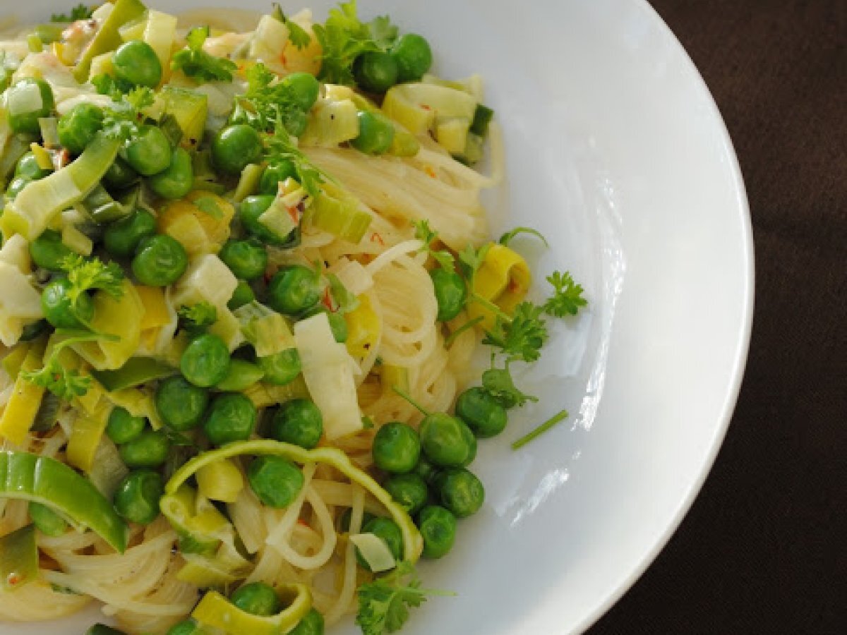 Cappellini mit lauch, erbsen und safran - cappellini al sugo di porro, piselli e zafferano
