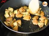 In einer Pfanne etwas Olivenöl erhitzen und das marinierte Hähnchen anbraten.