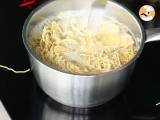 Einen Topf Wasser zum Kochen bringen. Die chinesischen Nudeln hineingeben, mit einer Gabel vermischen, die Pfanne abdecken und vom Herd nehmen. 4 Minuten ruhen lassen, dann die gekochten Nudeln abgießen.