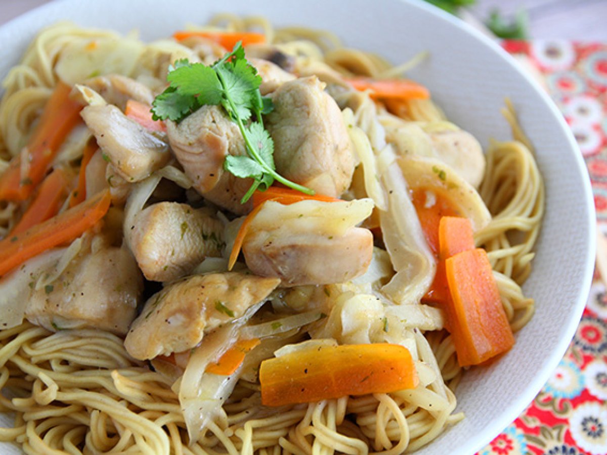 Los geht's, Ihr Chicken Chow Mein ist fertig!