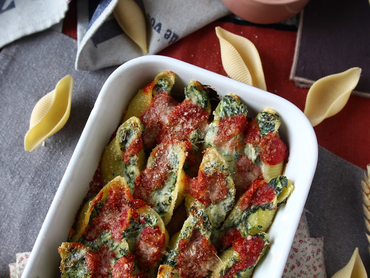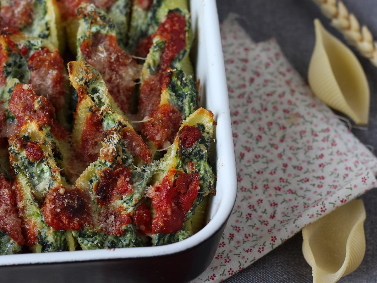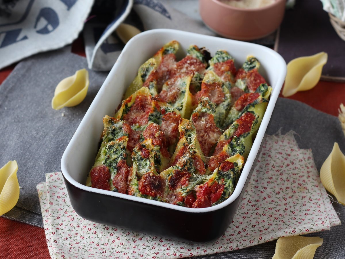 Conchiglioni, gefüllt mit ricotta und spinat: ein unwiderstehliches vegetarisches gericht aus dem ofen