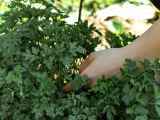 - Thymianblättchen von den Stengeln streifen. Rosmarinnadeln fein hacken. Petersilie nicht zu fein hacken.