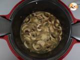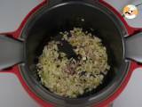Programmieren Sie den Cookeo im GOLD-Modus. Geben Sie einen Schuss Olivenöl in die Schüssel und fügen Sie dann Knoblauch, Schalotte und Zwiebel hinzu. Einige Minuten rühren.