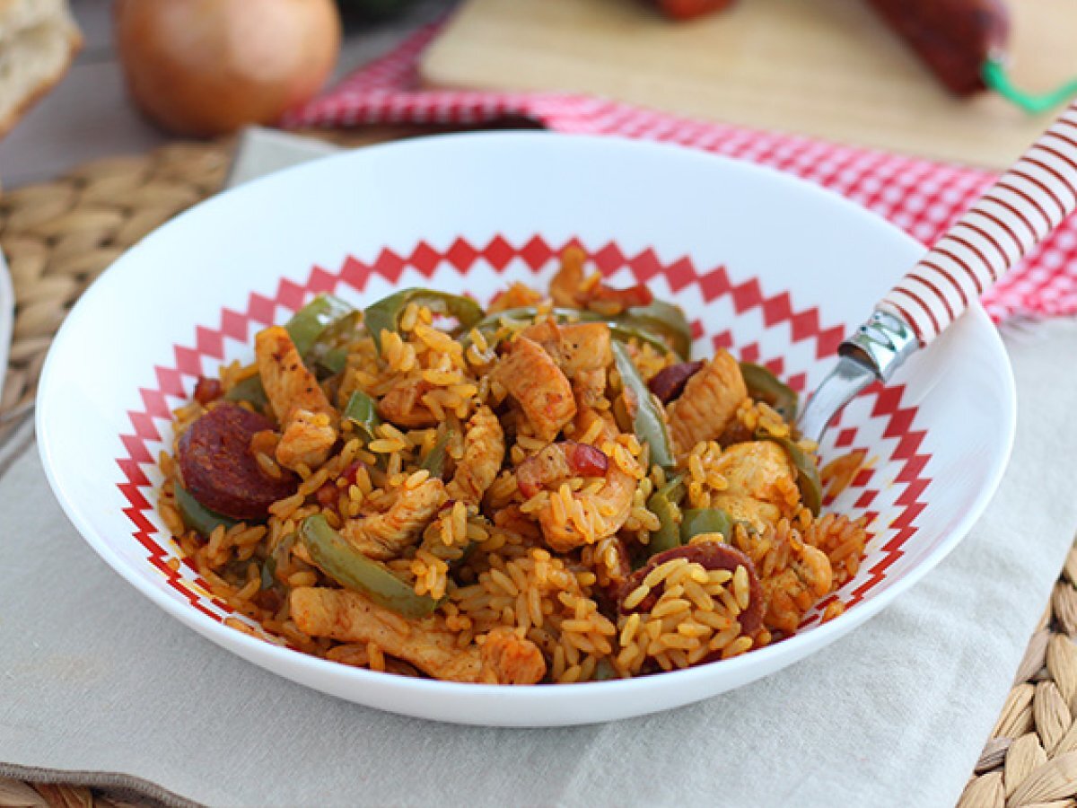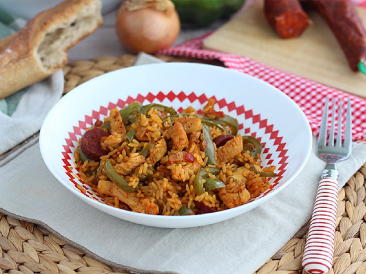 Heute kochen wir mit dem Cookeo! Ein ultrapraktischer Küchenroboter, mit dem man auch Rezepte schnell und einfach zubereiten kann. Der Beweis: Für diesen spanischen Kochtopf brauchen Sie nicht länger als 15 Minuten! Gefüllt mit Reis, Hühnchen, grüner Paprika und Chorizo haben Sie im Handumdrehen eine komplette, schmackhafte und leicht gewürzte Mahlzeit zubereitet. Orientieren Sie sich an unseren Schritt-für-Schritt-Erklärungen und auf geht's!