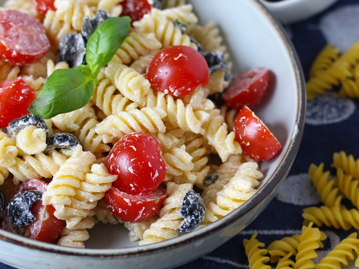 Was kann ich zu kalten cremigen Nudeln hinzufügen?
