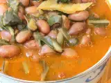 - Open 2 große Schachteln mit roten Bohnen (Bohnen). Die Bohnen im ersten Topf in ein Sieb geben, unter fließendem Wasser abspülen, und geben Sie mit dem gesamten Inhalt der zweiten Box in den Topf.