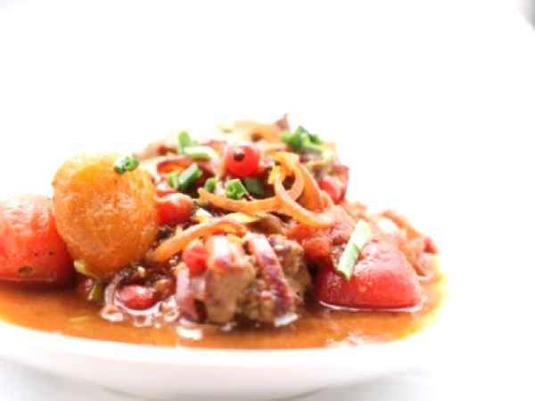 - Tanning Rundrum mittlerer Hitze, ablöschen mit einem Schuss Weißwein.