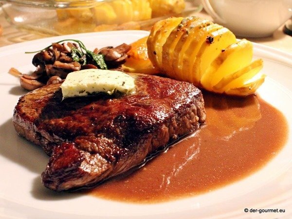 - Hüftsteaks trocken tupfen und zugedeckt auf Raumtemperatur bringen.